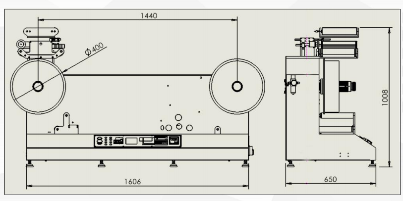 Spersonalizowany licznik etykiet ze stałą prędkością przewijania. Z 1-metrową przestrzenią między wałkiem odwijającym i przewijającym. Wystarczająco dużo miejsca na instalację drukarki atramentowej, laserowej, drukarki TTO itp.